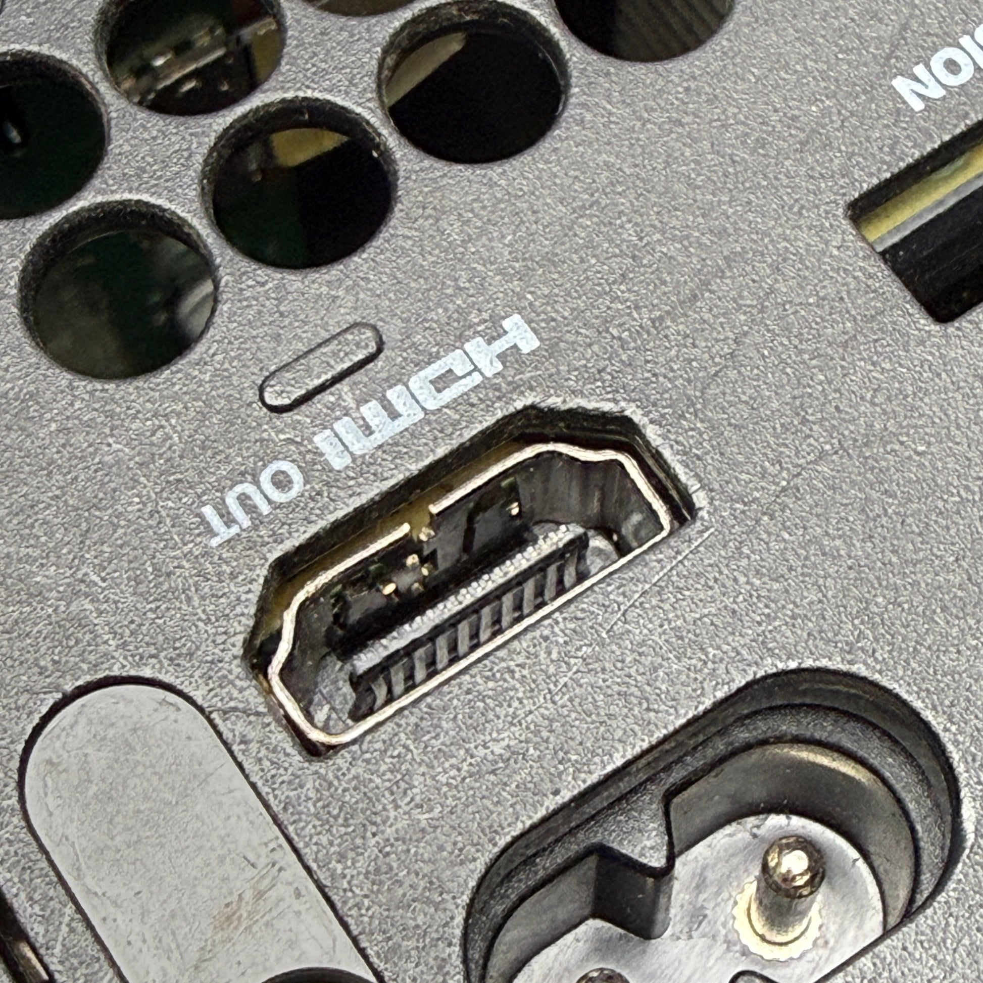This systems turns on and turns right back off. Doesn't stay on for long. The HDMI port is broken. This can be seen in the photos.